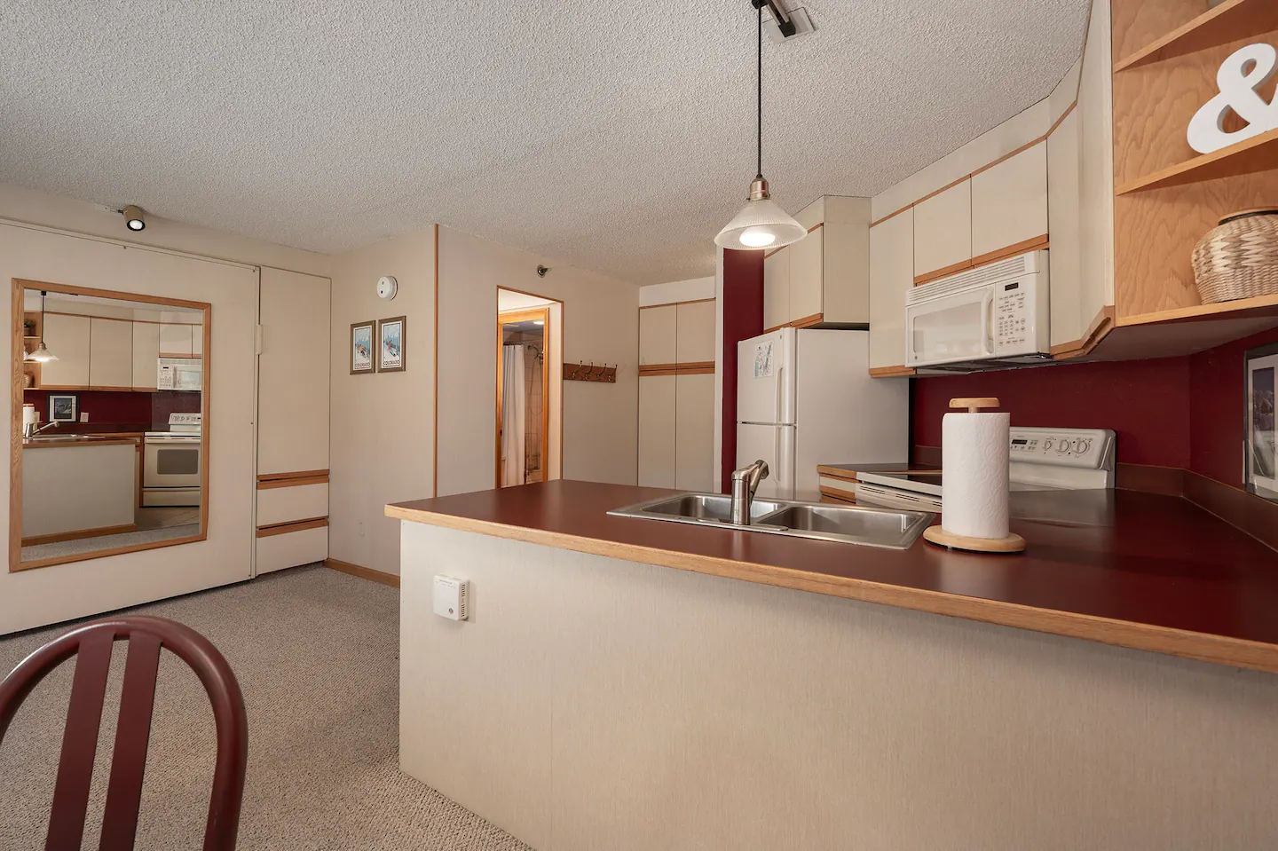 A Kitchen Fit for a Chef Unlike other studios, we don’t settle for half-measures. Our full kitchen is fully equipped with everything you need to whip up your favorite meals. Whether you’re preparing a hearty breakfast before hitting the slopes or a gourmet dinner to wind down after a day of adventure, you’ll find all the tools and appliances you need.